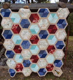 I got the Honeycomb quilt finished this week after all! Perfect timing as the linky for the Blogger's Quilt Festival opens this week and I can't think of a better quilt to enter. Remember, this is the quilt I based on the "Honey" design from Elizabeth Hartman.