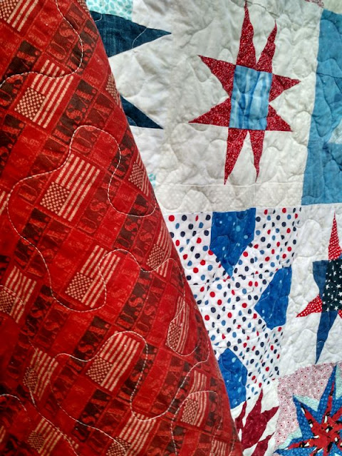 Some of July's block drive star quilts are finally ready to make their debut! You all did a fantastic job of sending in patriotic stars to make comfort quilts for Covered in Love.