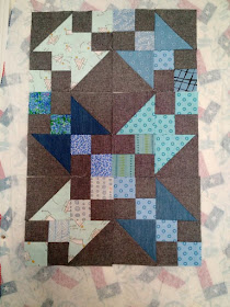 This brown manly quilt top was sent in by Sandra for Covered in Love. This lovely top was HAND PIECED! I wish I had gotten better pictures of the fabrics. It's just a simple rectangle setting, but some of the fabrics are beautiful.